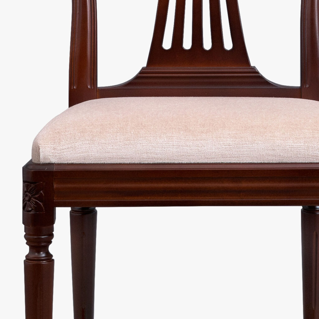 Soveltuu erityisesti amerikanpähkinän väristen kalusteiden kanssa, mutta on upea yhdistelmä myös tumman mahongin eli Hepplewhite-väristen kalusteiden verhoiluna.