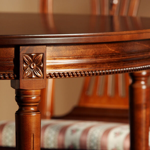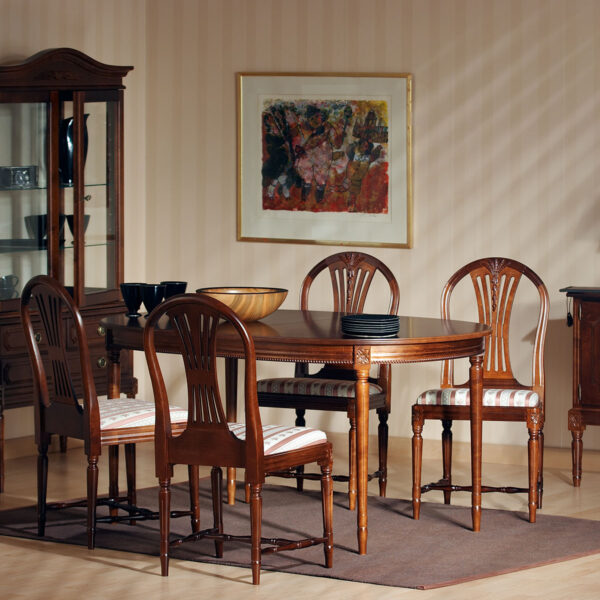 Yhdistä ruokapöytä Tähkäempire- tai Hepplewhite-tuolien kanssa. Empiretyylinen ruokapöytämme soveltuu yhdistettäväksi myös kustavilaistyylisten tuolien kanssa.