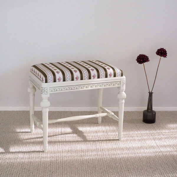 Sijoita rahi eteiseen tai walk-in-vaatehuoneeseen istuimeksi ja avuksi pukeutumiseen tai kenkien pukemiseen. Voit myös käyttää rahia istuimena kustavilaisen kirjoituslipaston tai kampauslipaston kanssa.