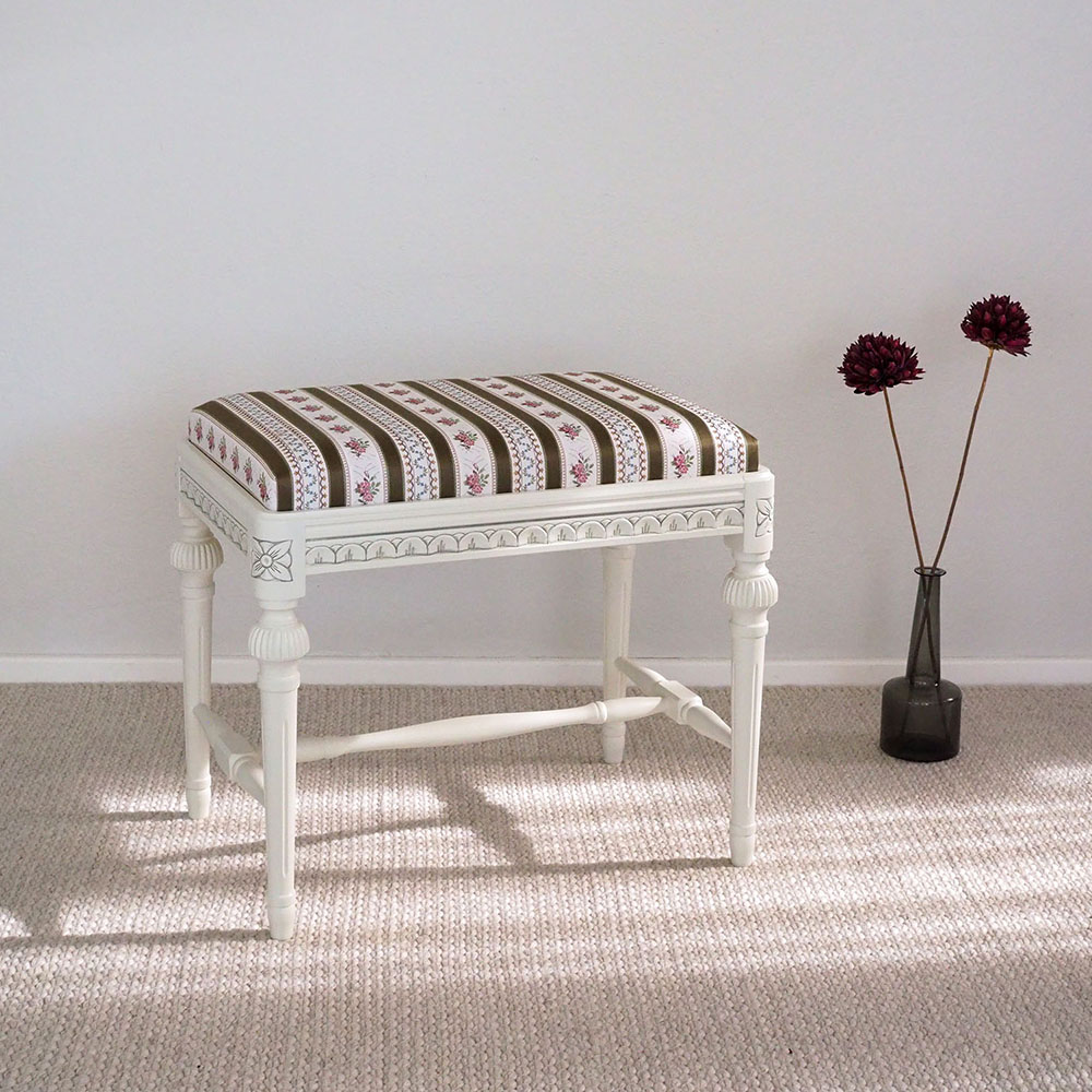 Tuo kotiisi pohjoismaisen hovityylin henkeä kustavilaisilla huonekaluilla. Kauniilla kankaalla verhoiltuna tämä rahi on kuin karamelli!