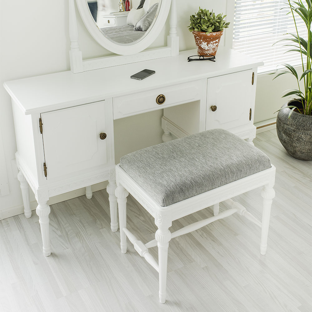 Sijoita rahi eteiseen tai walk-in-vaatehuoneeseen istuimeksi ja avuksi pukeutumiseen tai kenkien pukemiseen. Voit myös käyttää rahia istuimena kustavilaisen kirjoituslipaston tai kampauslipaston kanssa.