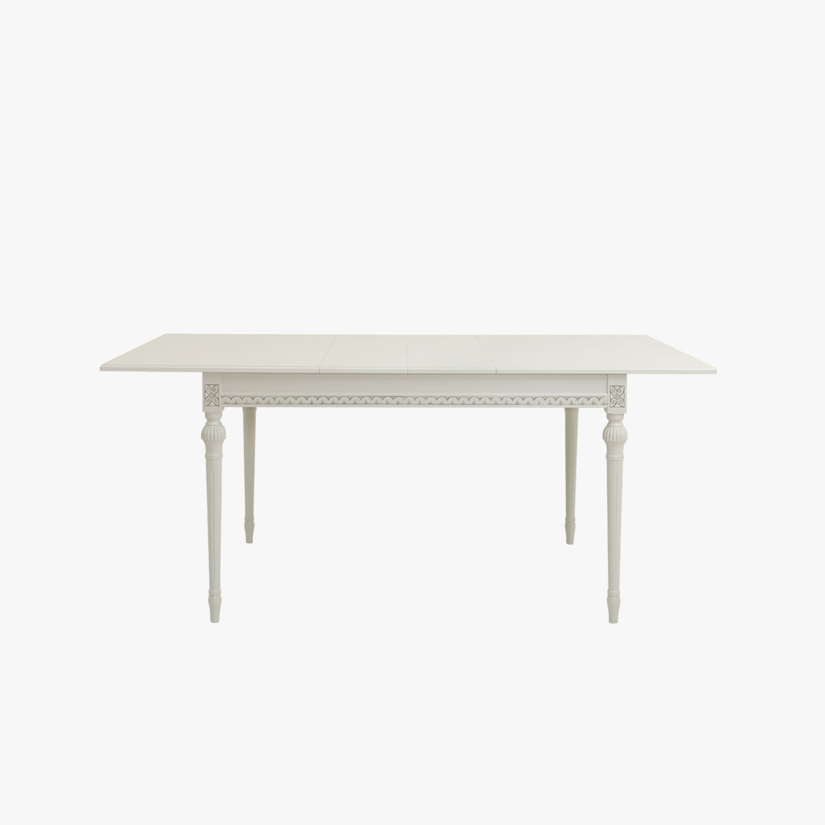 Kustavilaistyylinen, suorakaiteen muotoinen jatkettava ruokapöytä, joka soveltuu parhaiten 4 hengelle, mutta jatkettuna 6 hengelle.