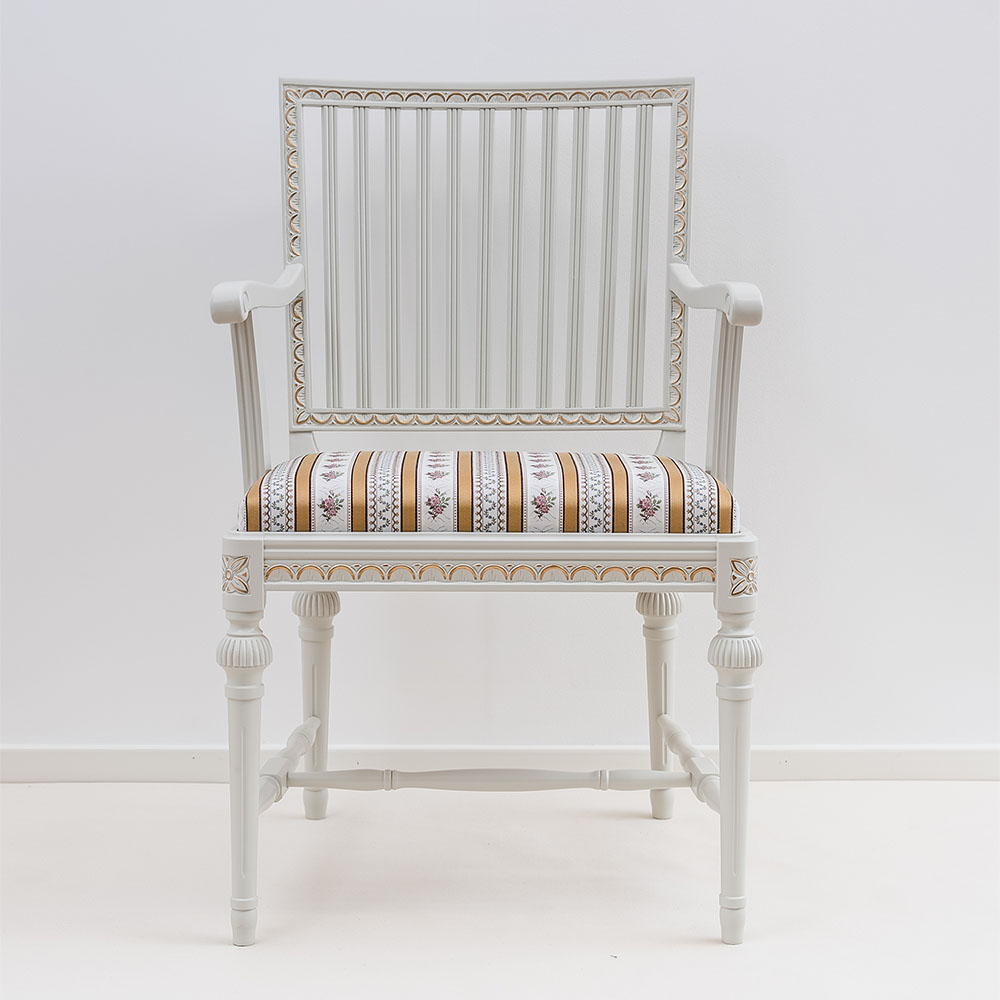 Kustavilainen seniorituoli on ryhdikäs, käsinojallinen, kustavilaistyylinen tuoli, jossa on korotettu istuinkorkeus.