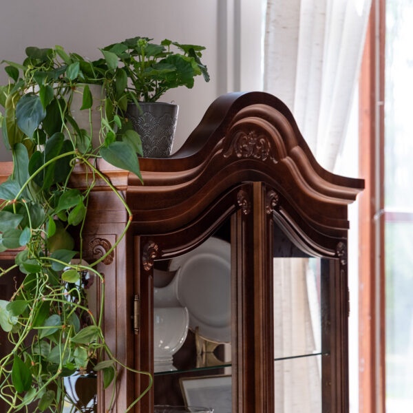 Säilytä juhla-astiasto, pöytähopeat, perintökristallit tai muut kallisarvoiset aarteesi talonpoikaisrokokoo hopeakaapissa.