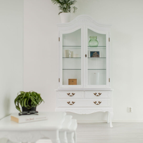Yläosan vitriinikaapissa säilytettävät tavarat ovat kauniisti esillä, mutta samalla suojassa. Tavaroiden säilyttäminen lasiovellisissa kaapeissa helpottaa siivousta ja vähentää pölyjen pyyhkimisen tarvetta, koska ovien takana esineet ovat suojassa enimmältä huonepölyltä. Ovet suojaavat tärkeitä tai hauraita esineitä pölyn lisäksi myös lasten pikkuisilta käsipareilta tai uteliailta lemmikkieläimiltä. Kaikki kaapinovet ovat lukittavia, joten ovet voi halutessaan laittaa myös lukkoon.