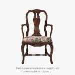Talonpoikaisrokokoo nojatuoli on hyvä valinta, jos kaipaat tukevaa käsinojallista tuolia, jossa on pehmustettu ja kevyesti joustava istuinosa.