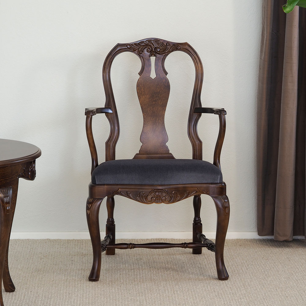 Etsitkö laadukasta ja näyttävää käsinojallista tuolia, jossa yhdistyy mukavuus, kestävyys, perinteikäs puusepäntyö ja elegantti tyyli? Tämä talonpoikaisrokokoo-tuoli on juuri sinulle!
