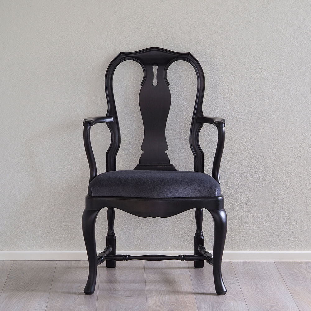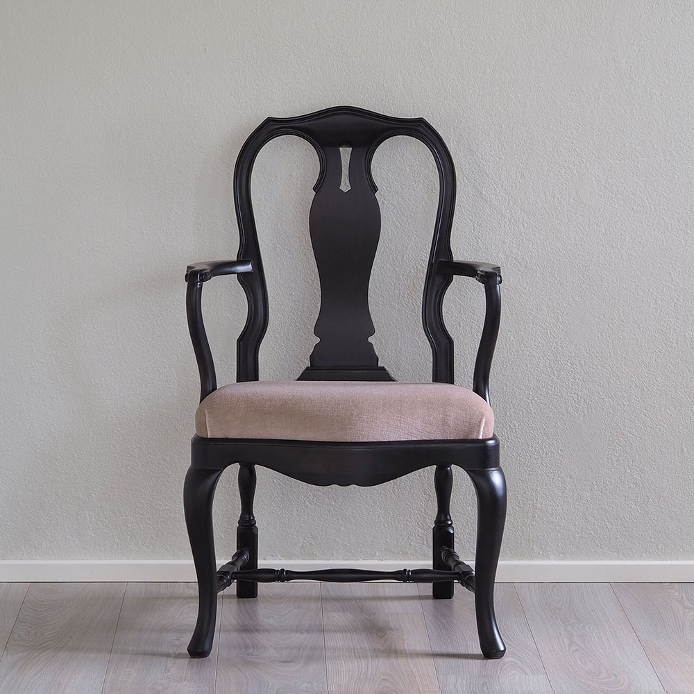 Talonpoikaisrokokoo nojatuoli, musta, valitse verhoilu
