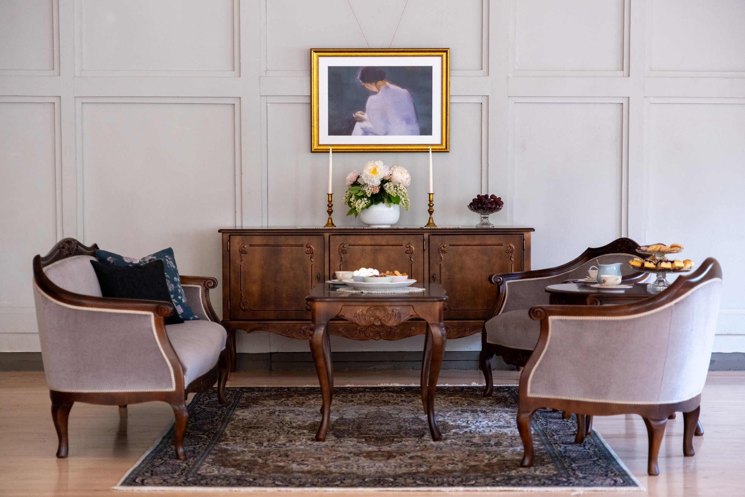 Yhdistä sympaattinen talonpoikaisrokokoo tyylinen rahi saman sarjan kampauslipaston tai kirjoituslipaston kanssa tai sijoita se eteiseen, makuuhuoneeseen tai vaatehuoneeseen pukeutumistuoliksi. Rahin istuinkorkeus on noin 45 cm.