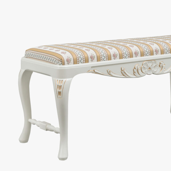 Sijoita talonpoikaisrokokootyylinen penkki sängyn päätyyn, eteiseen, makuuhuoneeseen tai vaatehuoneeseen pukeutumistuoliksi. Rahin istuinkorkeus on noin 45 cm.