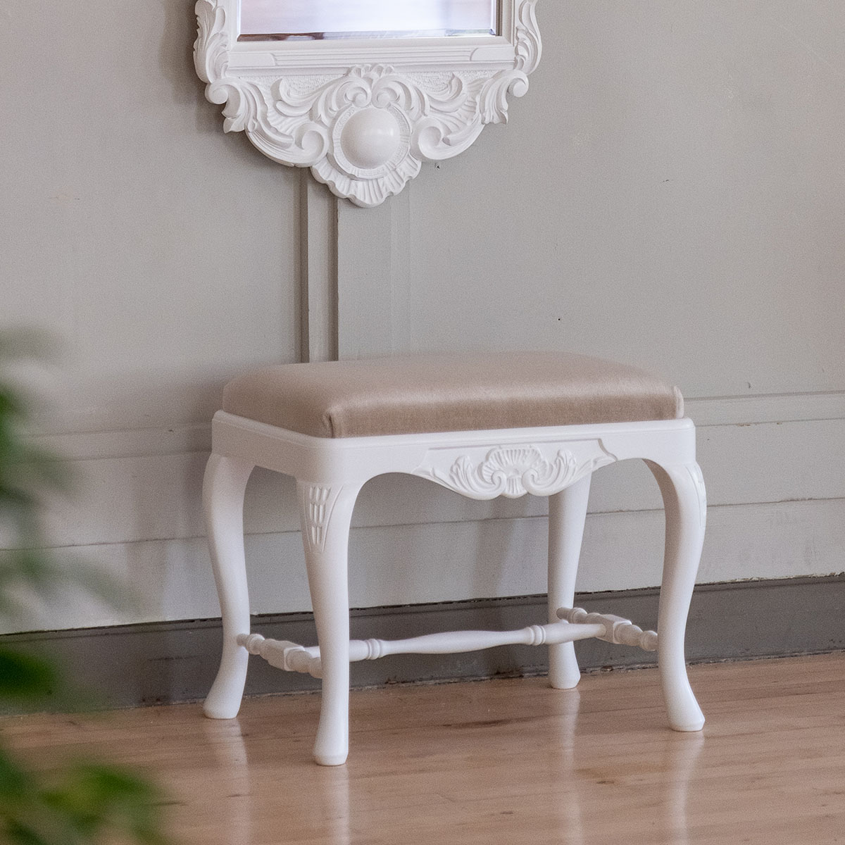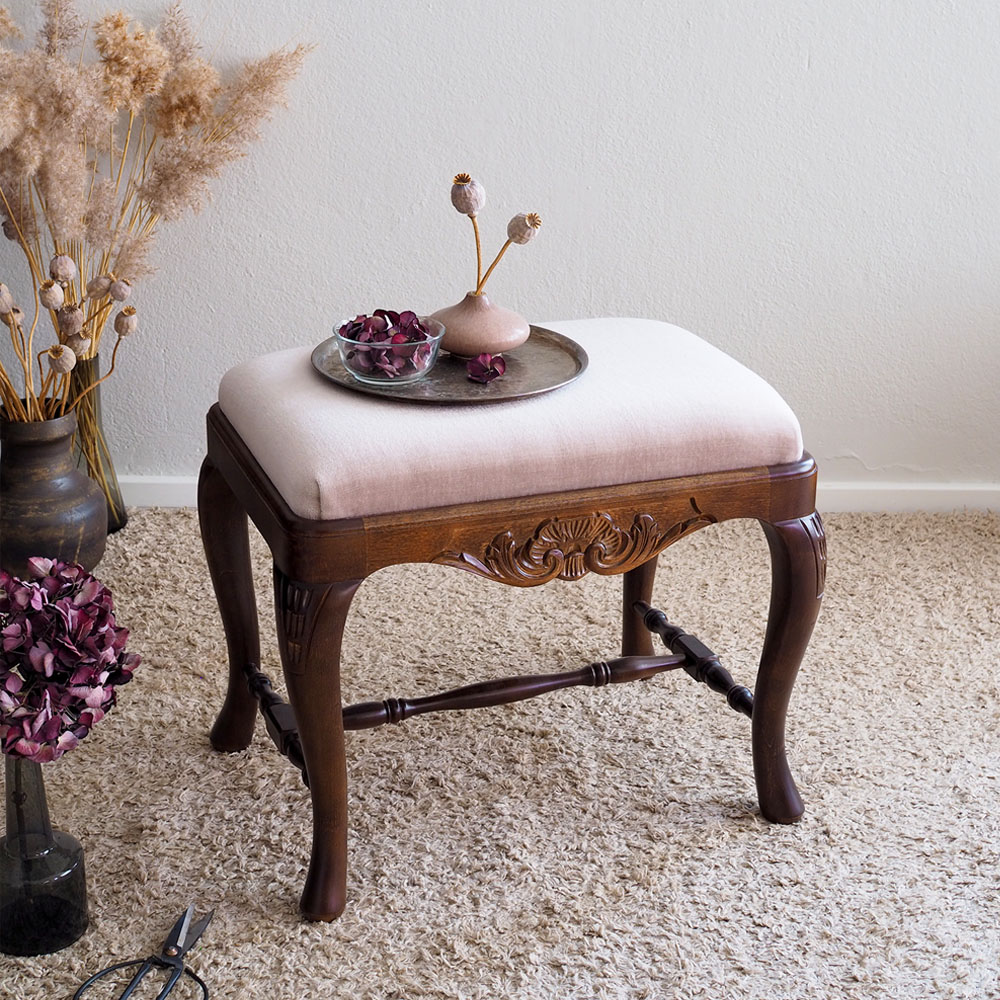 Yhdistä sympaattinen talonpoikaisrokokoo tyylinen rahi saman sarjan kampauslipaston tai kirjoituslipaston kanssa tai sijoita se eteiseen, makuuhuoneeseen tai vaatehuoneeseen pukeutumistuoliksi. Rahin istuinkorkeus on noin 45 cm.