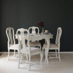 Valitse pöydän kanssa talonpoikaisrokokoo tuolit ja luo ruokaryhmästä yhtenäinen kokonaisuus, jota yhdistävät samat värit ja kuvioaiheet. Tai yhdistä osaksi nykyaikaista sisustusta, jolloin pöytä toimii upeana, historiaa henkivänä, koristeellisena elementtinä.