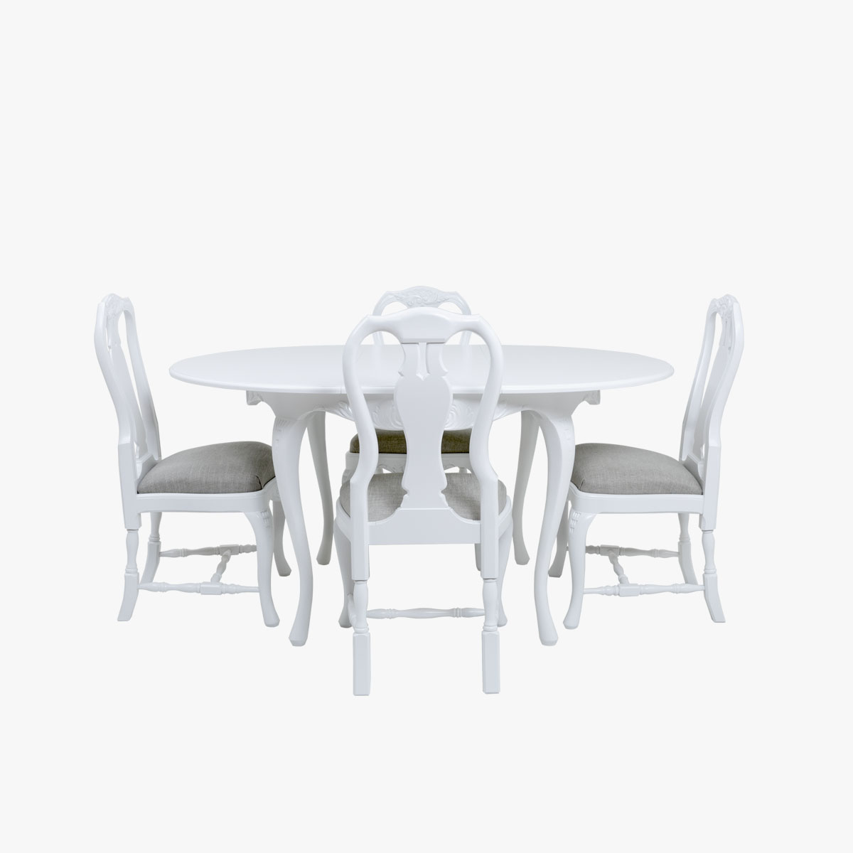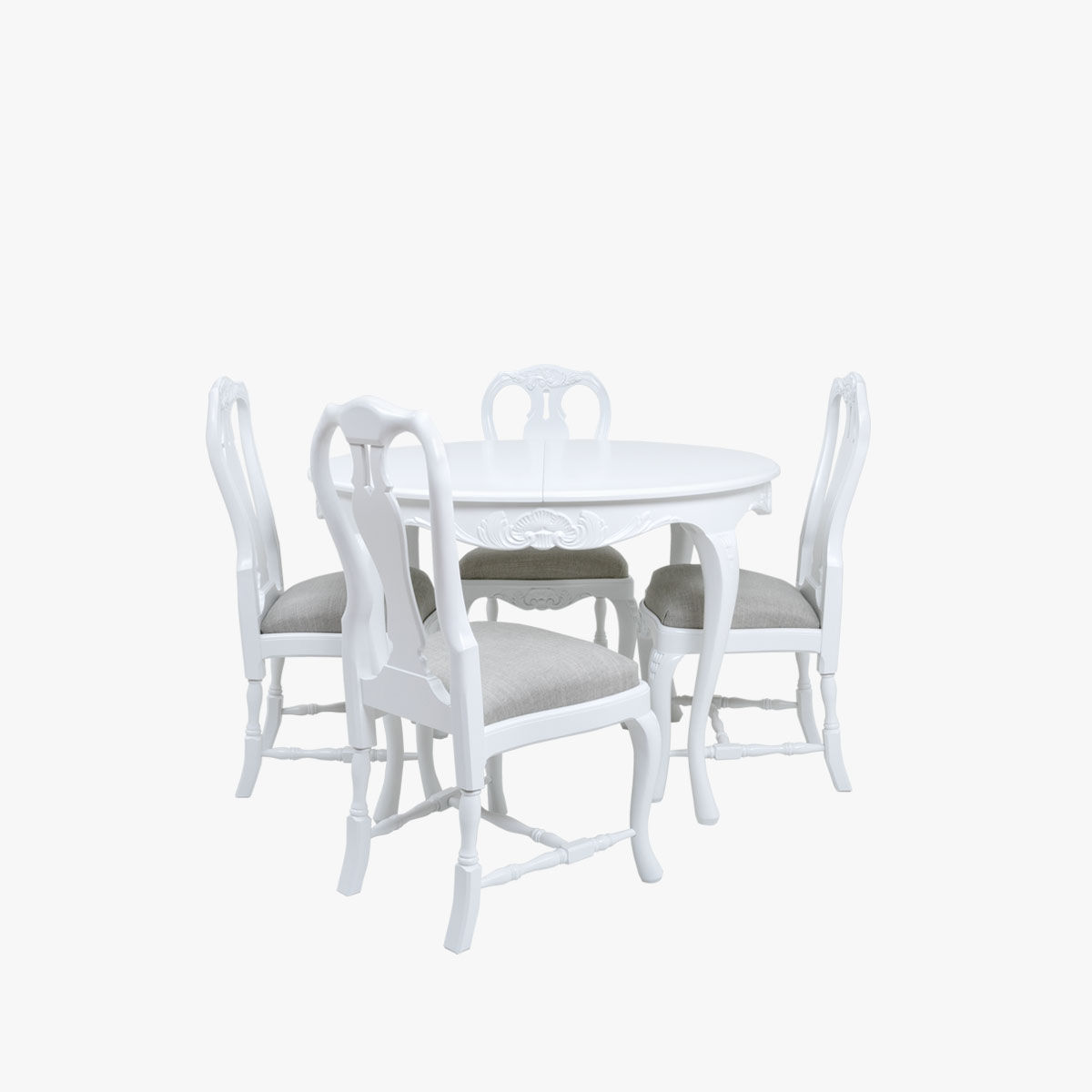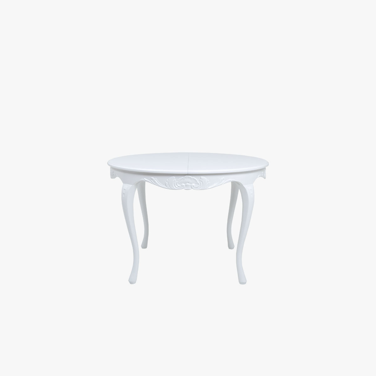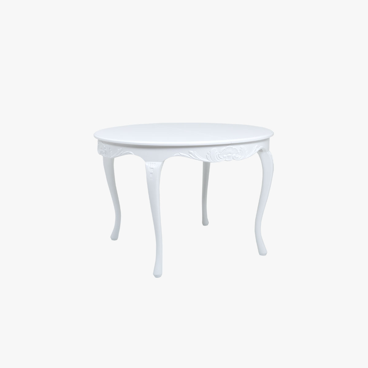 Talonpoikaisrokokooruokapöytä on ruokasalin helmi! Elegantti, talonpoikaisrokokootyylinen pyöreä ruokapöytä tuo kotiisi 1700-luvun rokokootyyliä.