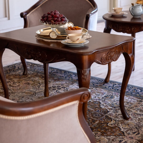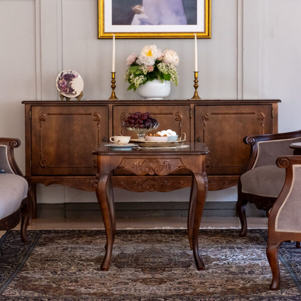 Etsitkö perintöhuonekalujen kanssa sopivaa sohvapöytää? Yhdistä talonpoikaisrokokoo sohvapöytä talonpoikaisrokokoosohvan ja lepotuolien kanssa yhtenäiseksi istuinryhmäksi olohuoneeseen, aulaan tai salonkiin. Talonpoikaisrokokoo sohvapöytä on nykyajan sohvapöytiin verrattuna sopivan korkea.