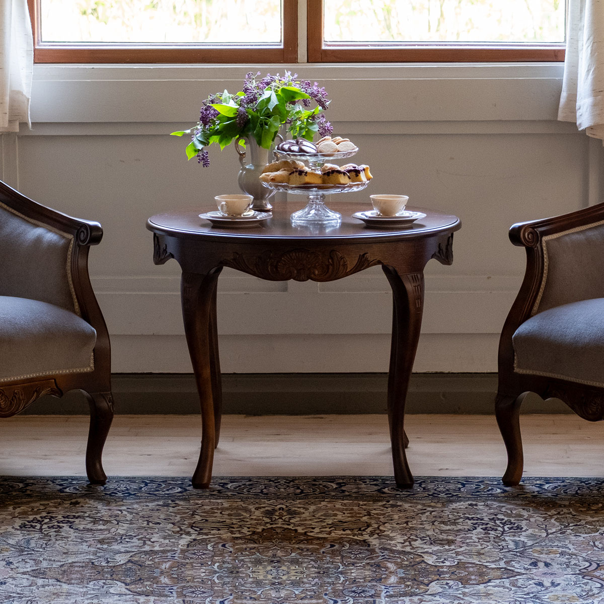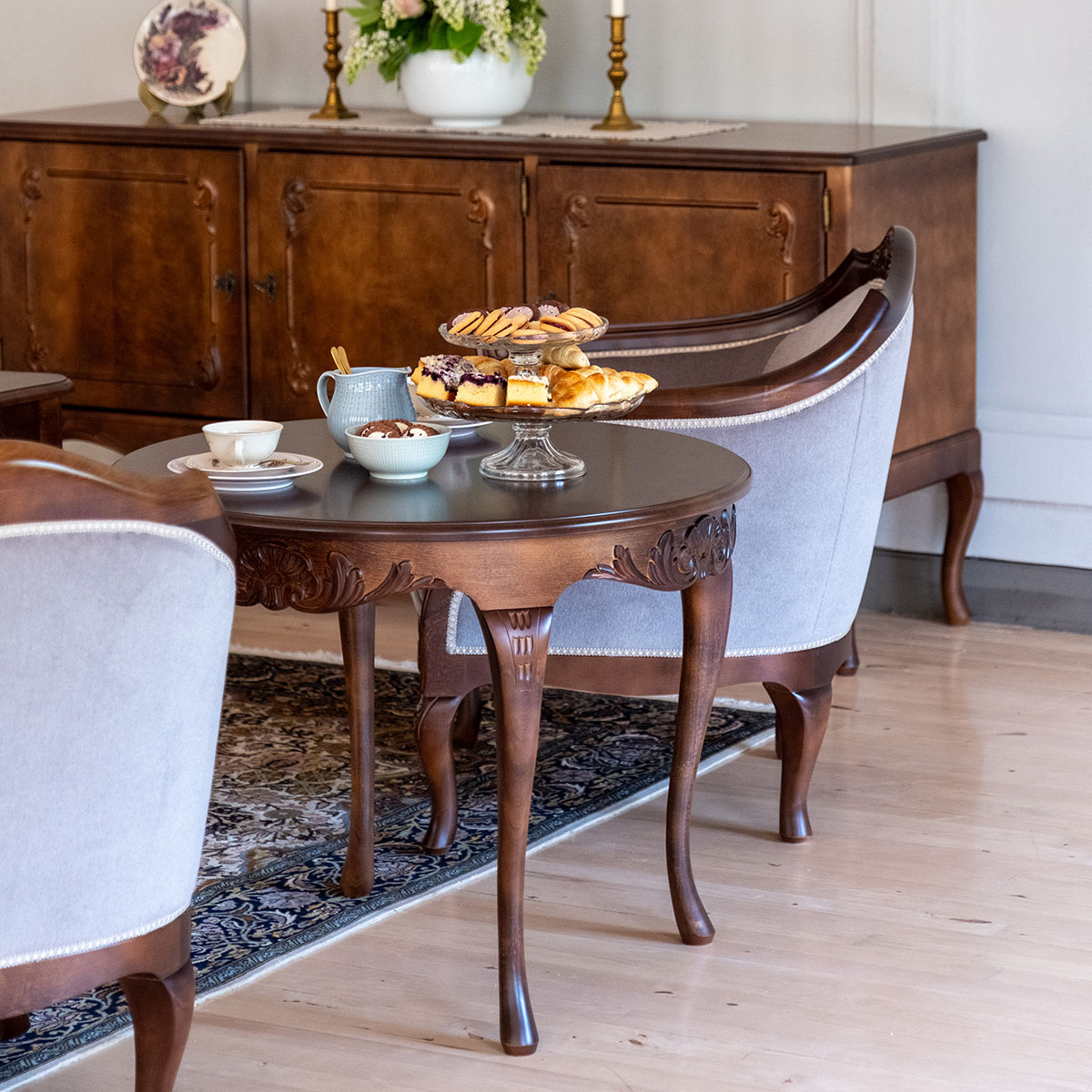 Talonpoikaisrokokoosohvapöytä on moniin nykyajan sohvapöytiin verrattuna korkea – ja juuri siksi niin käytännöllinen.
