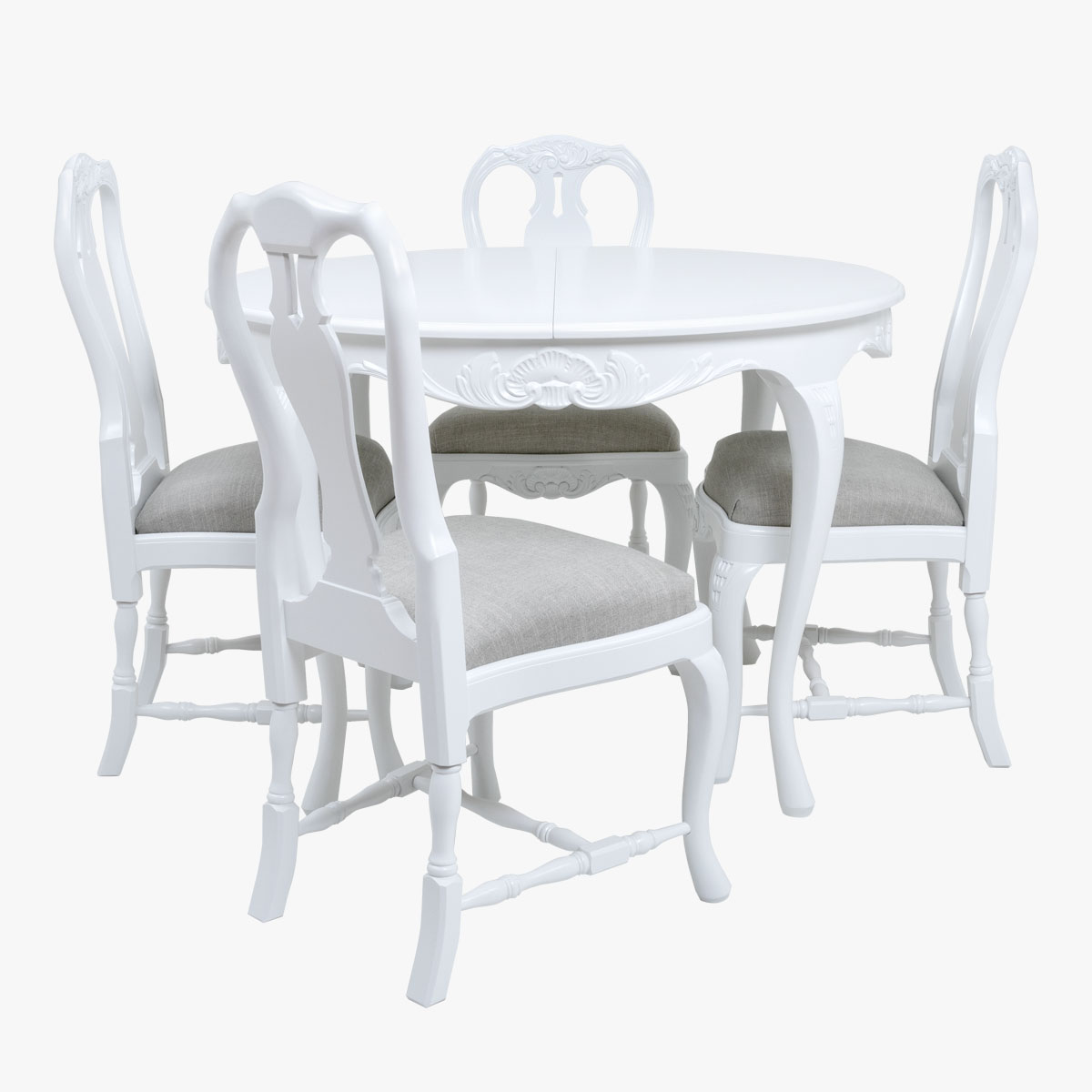 Yhdistä tuolit talonpoikaisrokokoo ruokapöytään tai käytä yksittäisenä istuimena ja koristeellisena sisustuselementtinä. Tuoli soveltuu pariksi myös talonpoikaisrokokoo kirjoituspöydän tai muun työpöydän kanssa. Voit käyttää tuolia pukeutumistuolina makuuhuoneessa tai walk-in-vaatehuoneessa.